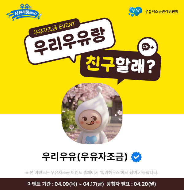 우리우유 카카오톡 채널 친구추가 이벤트
