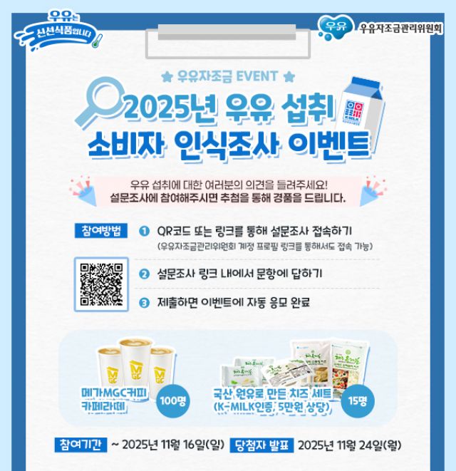 2025년 우유 섭취 소비자 인식조사 이벤트